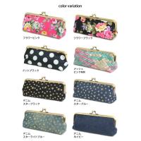 送料無料 がま口 小物入れ マチ付き ペンケース ポーチ ミニコスメポーチ 財布 かわいい 花柄 デニム ガマ口 コスメ ペンケース