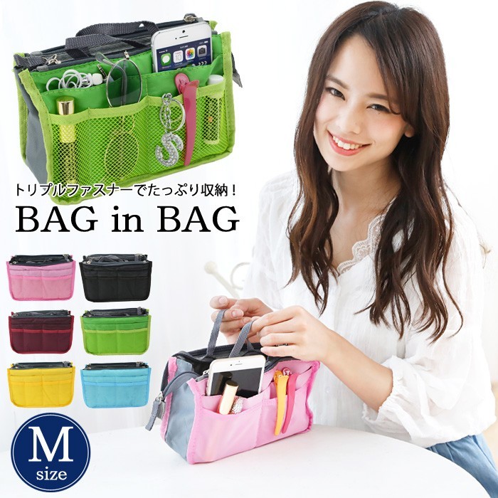 ミニトートやハンドバッグにぴったりな小さめサイズのバッグインバッグ。