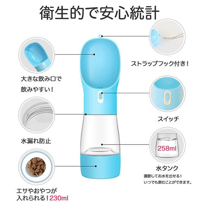 ペット用 水筒 お散歩 ウォーターボトル 水分補給 犬 猫 携帯用水飲み器 給水器 お出かけ アウトドア ペット用品 ドッグ用品 キャット用品