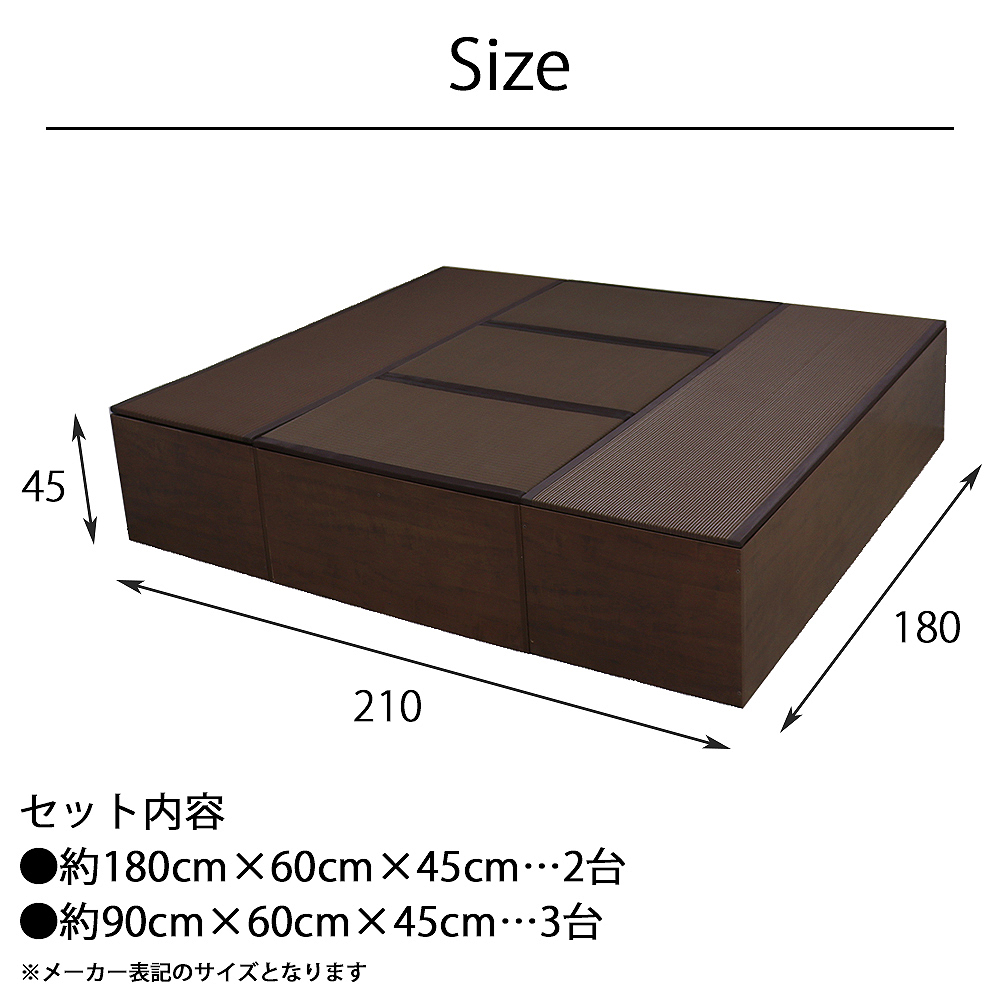 日本製 畳ユニット ハイタイプ Lセット 180×210×45cm 畳ベンチ 畳ボックス 収納 小上がり 高床式 い草 たたみ 収納ユニット 畳スツール 畳ベッド 送料無料