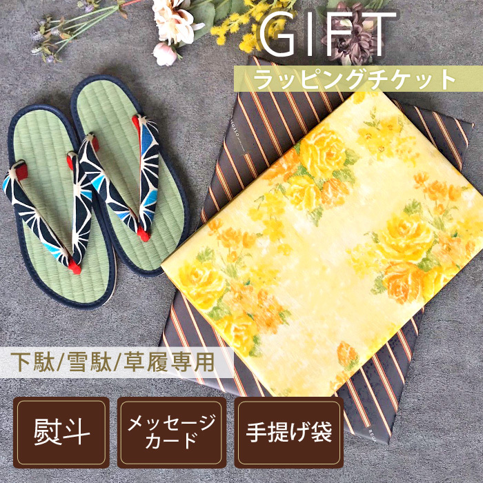 みどりや&GIFT有料ラッピングサービス ●メッセージカード付き こちらは「下駄」「雪駄」「草履」の専用ギフトチケットのページとなります。 |