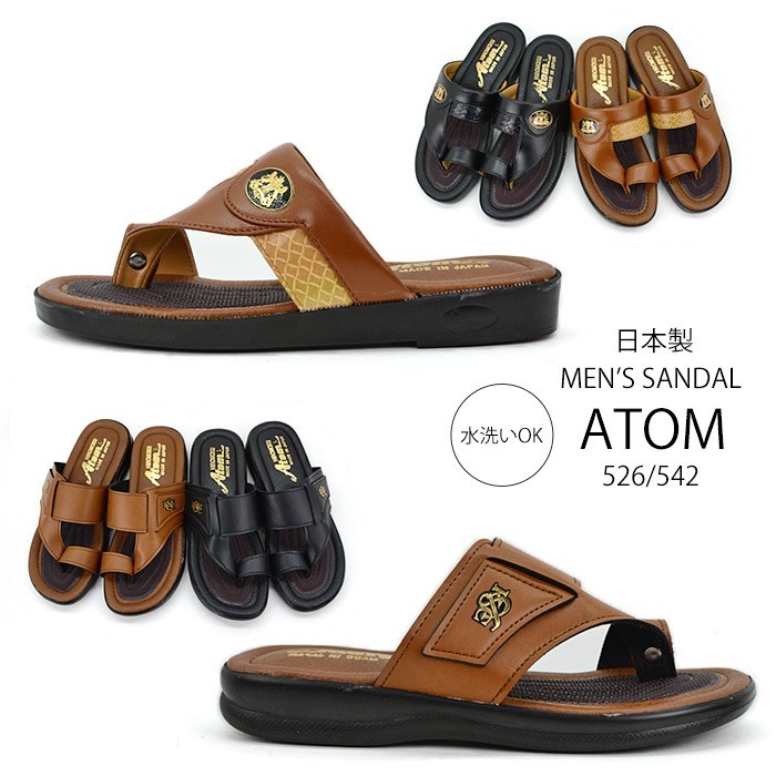 日本製 紳士用 サンダル ヘップ つっかけ 屋外 屋内 メンズ スリッパ 水洗いOK 備長炭サンダル ゲルマニウム サンダル ヒロモク アトム 526/542 アウトドア 洗車 ビーチ 事務用 家庭用 室内履き 外履き 紳士用サンダル