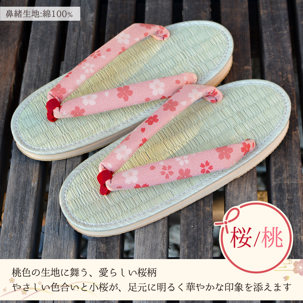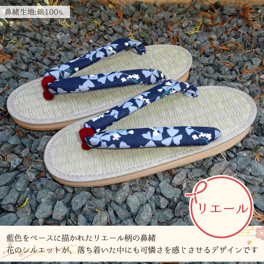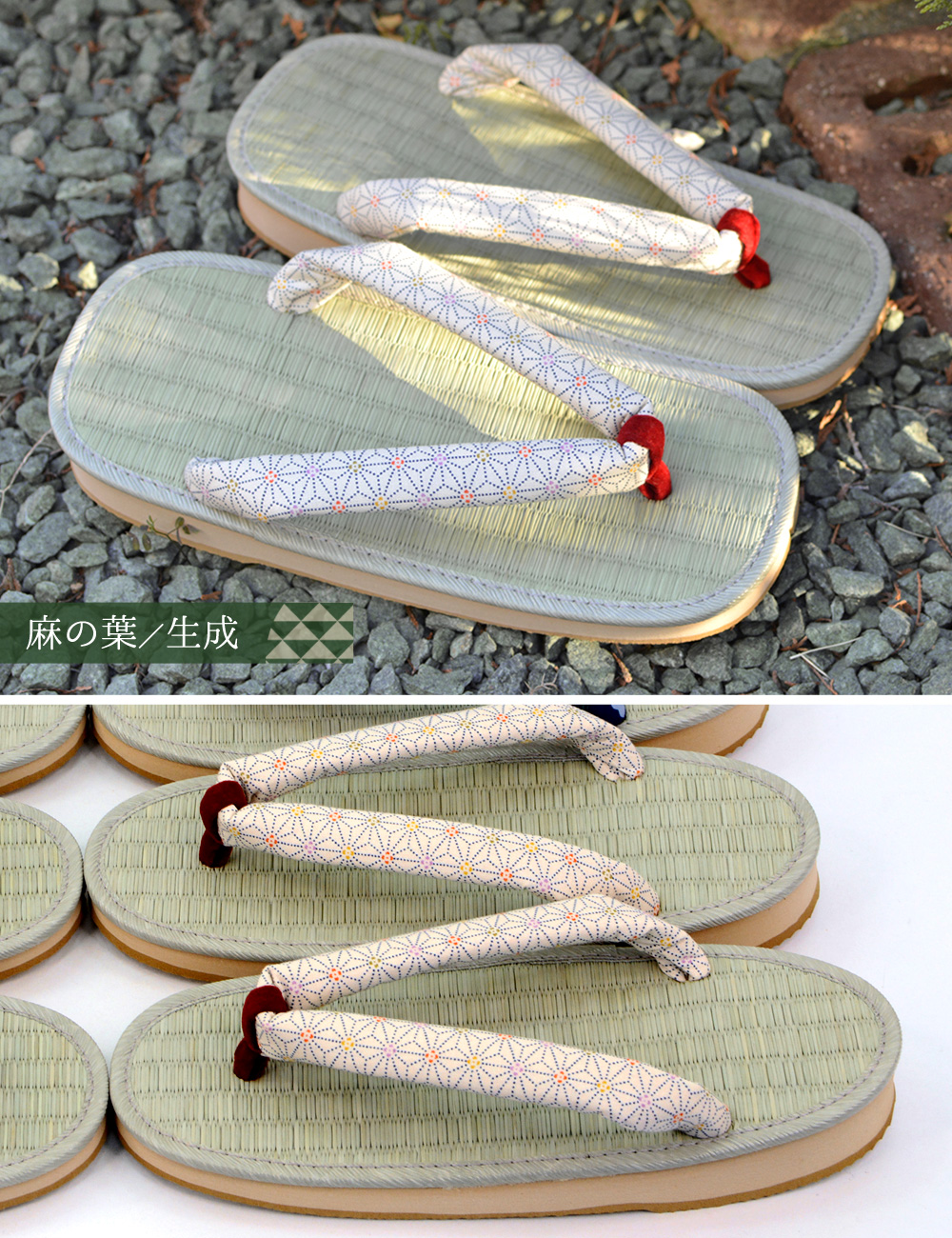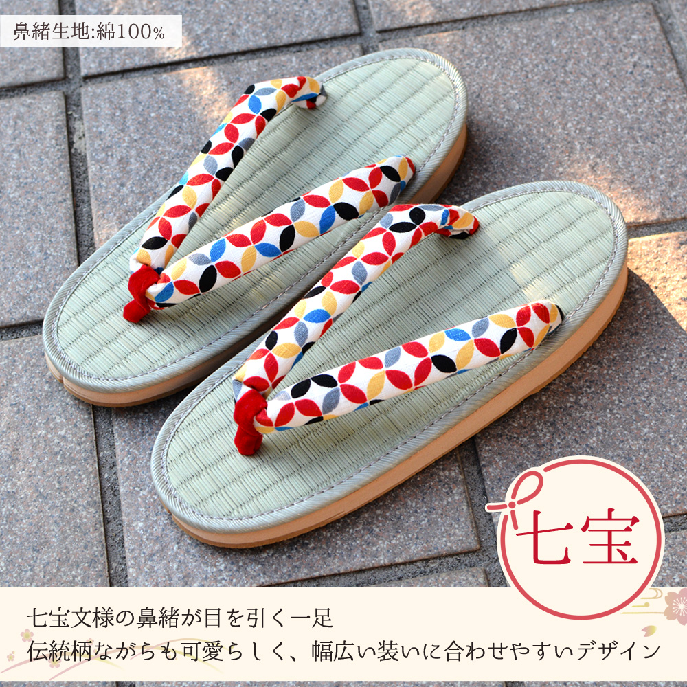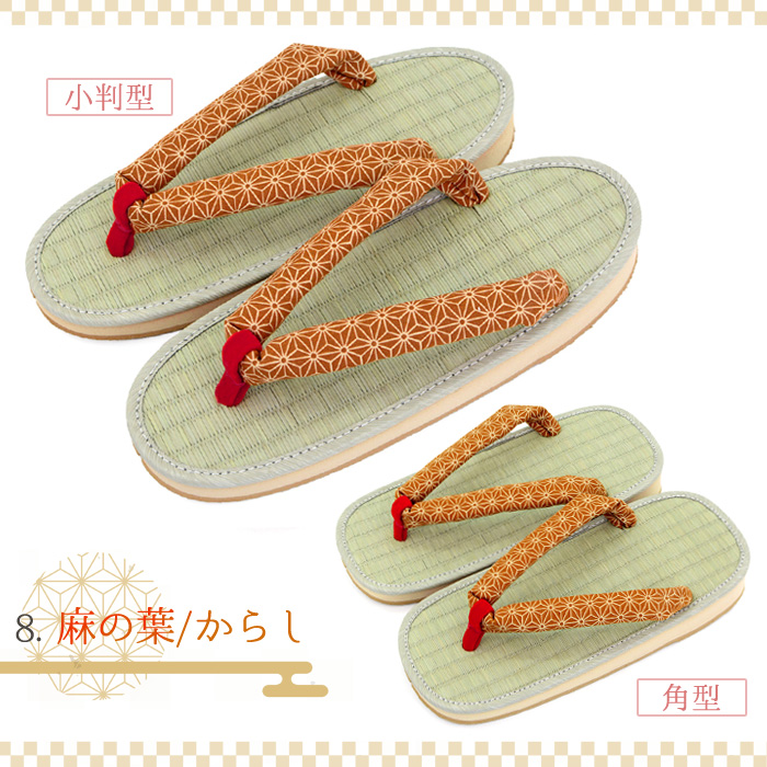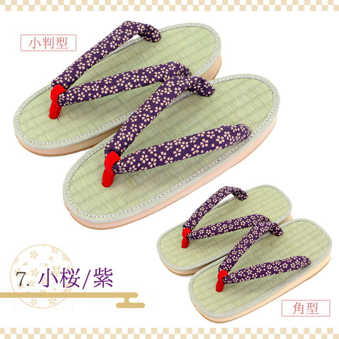 | 和装はもちろん、カジュアルな装いにもなじむ柄を厳選。 当店が選んだ生地で仕立てた、ここでしか手に入らないオリジナル鼻緒の雪駄です。 さらりと心地よいタタミ(い草)の天板は、一年を通して快適な履き心地。 通気性に優れ、足裏に熱がこもりにくく、蒸れにくいのも魅力です。 弾力のあるスポンジ底を採用しているため、足が痛くなりにくく、軽やかにお履きいただけます。 日本の職人が一足一足丁寧に仕立てた、細部までこだわりの詰まった一足です。 ■ブランド:竹春(TAKEHARU) ■生産地:日本 ■素材:[台]い草(畳)、[鼻緒]綿100%、[スポンジ部分]EVA ■サイズ(実寸) 縦×横、台のつま先から先坪(鼻緒)までの長さ 小判型M(標準):23.5×8.8、4cm 小判型L(大きめ):24.5×10、4cm 角型M(標準):23.5×10、4cm 角型L(大きめ):25×10、4cm すべて手作業での採寸のため、若干の誤差が生じる場合がございます。 ■適応サイズ 小判型:M(標準)22.5〜24.0cm、L(大きめ)23.5〜25cm 角型:M(標準)22.5〜24.5cm、L(大きめ)23.5〜25.5cm 雪駄はフリーサイズとなりますので、表記しているサイズは目安となります。 履き始めは鼻緒が窮屈に感じられますが、履き込むほど鼻緒が程よく伸び、足に馴染んできます。 【履き方のコツ】 雪駄を履く時は親指と人指し指の間に余裕を持たせ、かかとが少し飛び出るくらい浅めに履くと鼻緒で指の間を痛めにくいです。歩く際には重心が前になるように意識する事がコツです。 【サイズ選びのポイント】 雪駄は本来、かかとを少し出して履くのが一般的な履き方とされております。 履いていてかかとが痛くないほどの出方がちょうど良いサイズです。 足全体が台に乗った方が楽な方もいらっしゃいますので、ご自分のスタイルに合ったサイズをお選びください。 【長く使うためのコツ】 雪駄には左右がありませんので、時々左右を履き替えて頂くと長持ちします。 <ご注意> ・大きな布から型をとっておりますので、画像と柄の位置が若干異なる場合がございます。仕様となりますのでご了承くださいませ。 ・商品は防水されておりません。カビなどの原因となりますので、雨天時はご使用をお控えください。 ・鼻緒の裏面に色が付いている物は色移りする場合がありますのでご注意ください。 ・モデル着用写真は屋内外での撮影の為、光の影響で実際のカラーとは異なる場合がございます。 カラーバリエーションの画像が実物に最も近いお色味です。 |