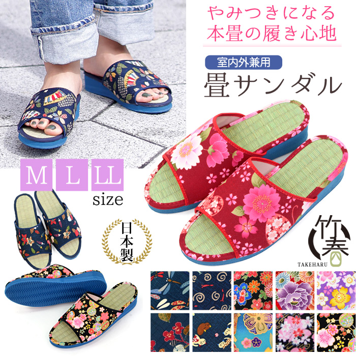 | 畳は通気性があり足の裏に熱をためず、足の裏が蒸れにくくいつも快適です。 外でも室内でも履ける!ライフスタイルによって使い分けができます。 日本の職人さんが作った、細かいところまで丁寧な仕上がりです。 ■ブランド:竹春(TAKEHARU) ■生産地:日本 ■適応サイズ(レディースサイズ) Mサイズ:22.5〜23.5cm Lサイズ:23.5〜24.0cm LLサイズ:24.0〜24.5cm 【サイズについて】 フリーサイズとなりますので、表記しているサイズは目安となります。 かかとが少し出るよう小さめのつくりとなっております。 かかとをおさめて履きたい場合や、甲幅の広い方はワンサイズ上の商品ををおすすめします。 実寸サイズは画像をご確認ください。 <ご注意> ※大きな布から型をとっておりますので、画像と柄の位置が若干異なる場合がございます。 仕様となりますのでご了承くださいませ。 ※商品は防水されておりません。カビなどの原因となりますので、雨天時はご使用をお控えください。 ※モデル着用写真は屋内外での撮影の為、光の影響で実際のカラーとは異なる場合がございます。 カラーバリエーションの画像が実物に最も近いお色味です。 ※お客様のご覧になられますパソコン機器及びモニタなどの違い、また室内、室外での撮影により実際の商品素材の色と相違する場合もありますのでご了承下さい。なお著しい色の相違は御座いません。 ★スタッフ試着★ 【スタッフD】 普段のサイズ:23cm 足幅:8.5cm/甲囲:20cm/足長:22cm M…かかとがピッタリおさまるサイズです。 L…かかとが少し余るサイズですがM、Lどちらでも履きやすいです。 底のスポンジがフカフカでクッション性が高いです。 【スタッフK】 普段のサイズ:24cm 足幅:9.5cm/甲囲:24cm/足長:23cm L…1cmほどかかとが出ますが、ちょうど良いサイズです。 LL…かかとは出ずちょうど良いサイズです。 L、LLどちらでも快適に履けるサイズ感です。Lの方はフィット感があります。 |