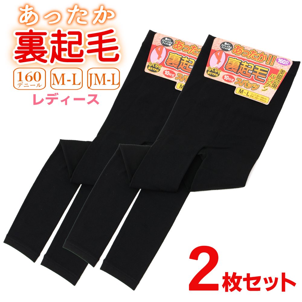 裏起毛レギンス 裏起毛タイツ 2枚セット 160デニール 裏起毛 履く毛布 パンツ 10分丈 スパッツ レディース インナー 黒 マチ付き あったか メール便送料無料