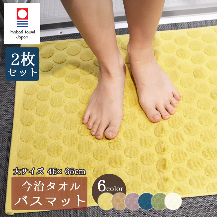 今治タオル バスマット 2枚セット 高品質 厚手 日本製 45×65cm ドットバスマット 今治 タオル マット お風呂マット 浴室マット 足拭きマット エステ 美容室 タオル地 吸水 速乾 洗える プレゼント 内祝い 贈り物