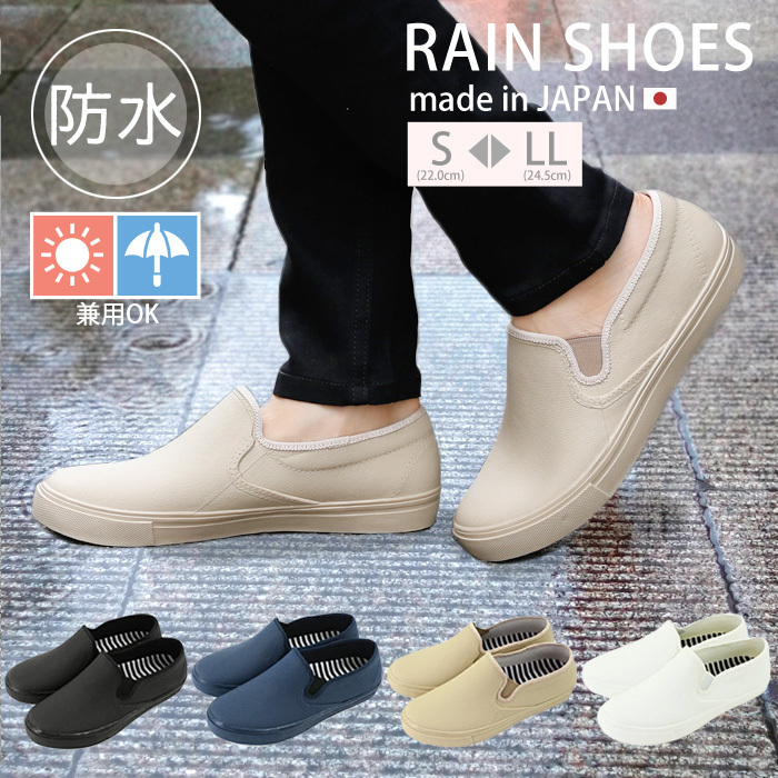 日本製 レインブーツ レインシューズ レディース ショート スニーカー 晴雨兼用 長靴 雨靴 レインスリッポン スリッポン 完全防水 梅雨 雨 雪 冬 黒 紺 白 ブラック ネイビー ベージュ アイボリー 小さめ 大きめ