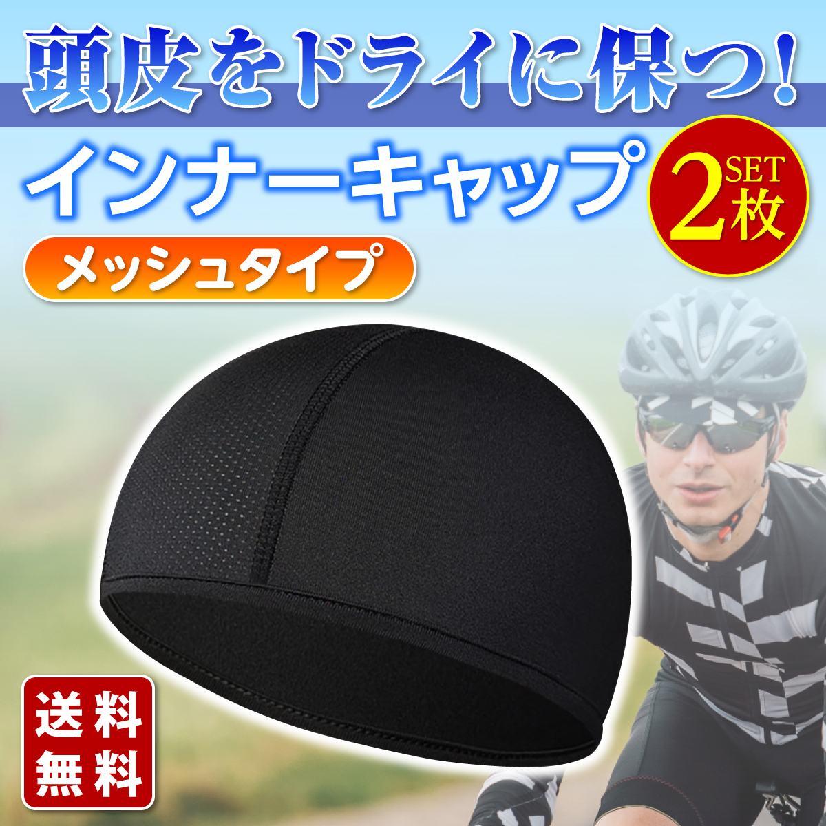 インナーキャップ 2枚組 ヘルメット 帽子 バイク 夏 速乾 自転車 吸汗 蒸れ防止 汗取り 消臭 抗菌