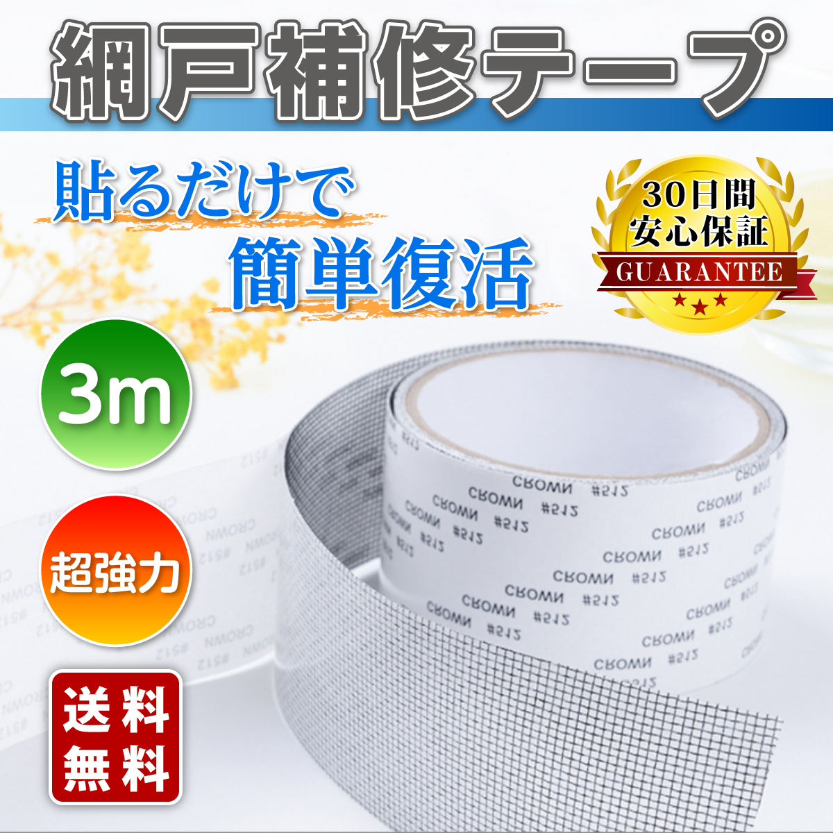 網戸補修テープ 貼るだけ 修理 枠 修繕 防水 強粘着 網戸 補修 テープ DIY 3m 簡単 ガラス繊維