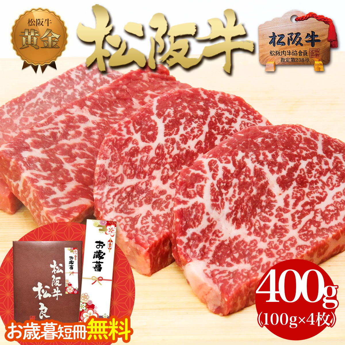 ![]() 松阪牛A5赤身ステーキ 200g×2枚 | ![]() 松阪牛黄金の特選すき焼き 400g |