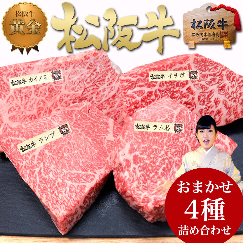 | 商品詳細 | 松良肉のソムリエのおまかせ4種、松阪牛ステーキセット!プロがその日にとれるステーキに美味しい部位など、とにかく新鮮で食べ比べに美味しいものを詰合せでお届けします!三筋、内もも、くり、内もも、外もも、かいのみ、ランプ、らむしん、まるしん、はねした、みすじ、いちぼ、ひうち、サーロイン、リブロース、ヒレ ハラミ 三角 フランク とうがらし シキンボウなどから厳選いたします。 |