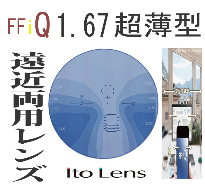 遠近両用 イトーレンズ 眼鏡レンズ 遠近内面累進 高屈折1.67 紫外線UVカット400 撥水コート FF-iQ 67 HM(超薄型)2枚1組