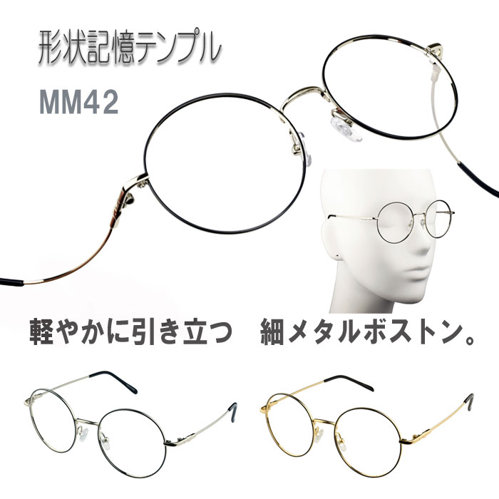 形状記憶テンプル 眼鏡 度付き 度なし 度入り おしゃれ 乱視対応 丸メガネ メガネ 細いリム MINIMIZE/MM-42