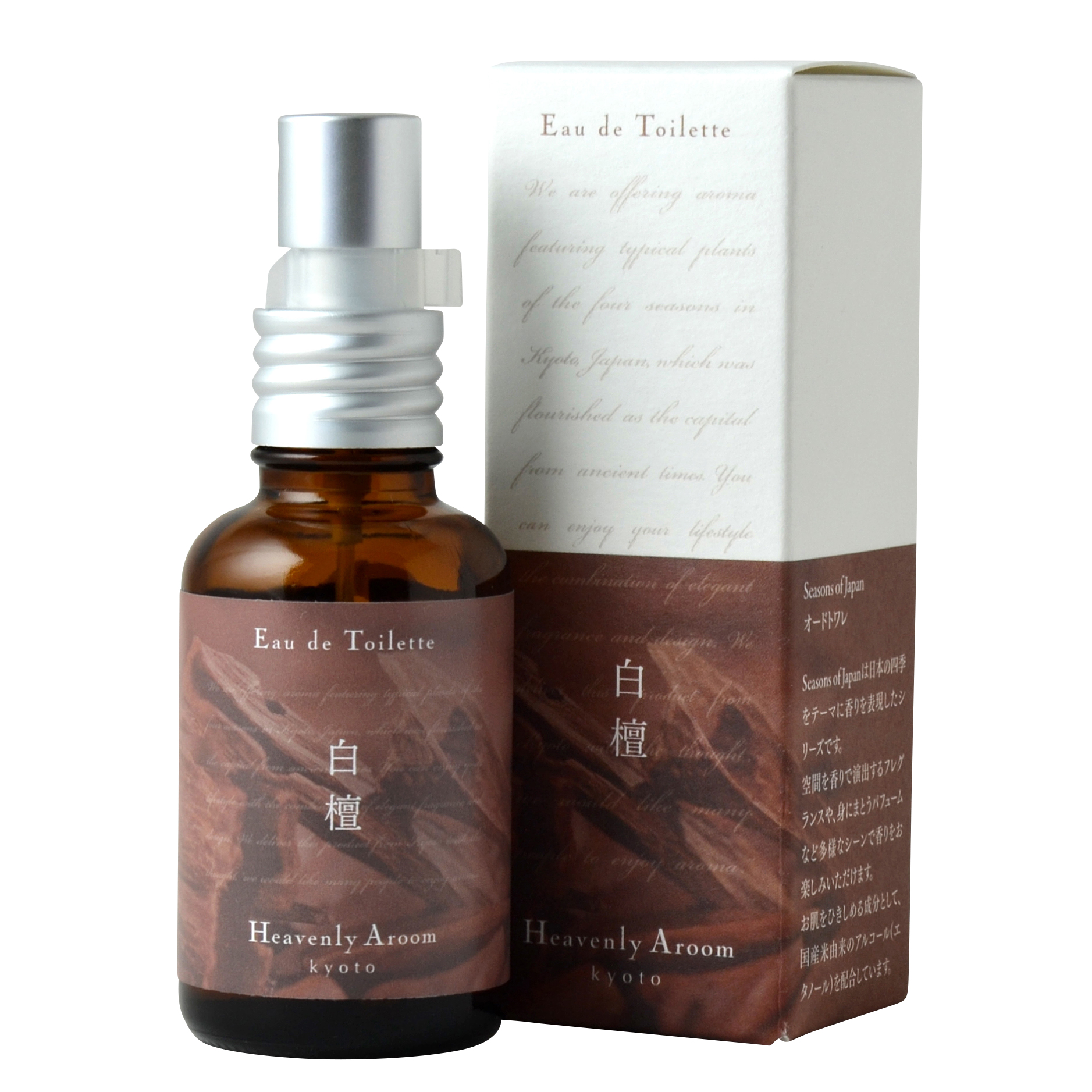 Heavenly Aroom オードトワレ Seasons of Japanシリーズは、お肌をひきしめる成分として国産米由来のアルコール(エタノール)を配合した、スプレータイプのオードトワレです。