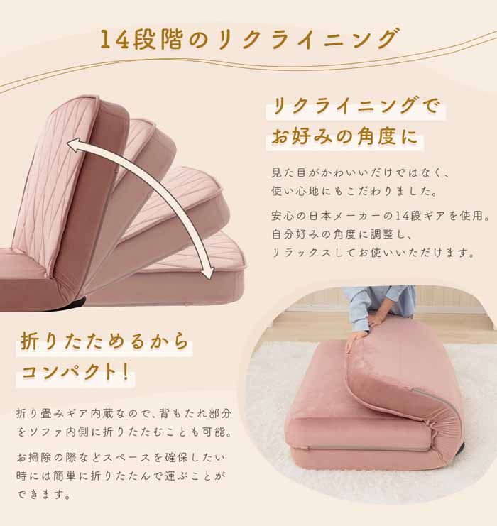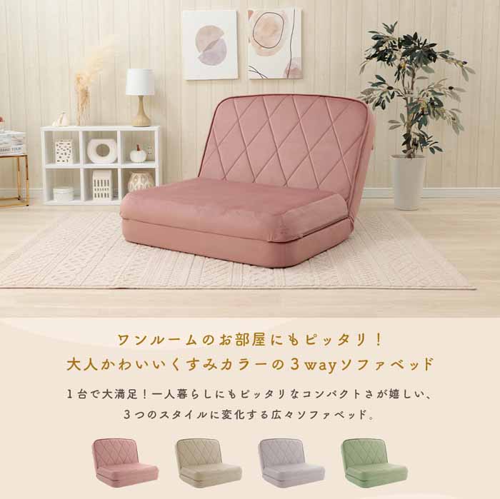 3way女子ソファベッド a1233-qlt 座椅子 おしゃれ 女性 かわいい 日本製 女子座椅子 一人掛け リクライニングチェア ローソファー 一人暮らし 10469