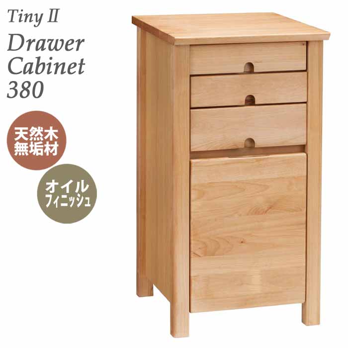 デスクサイド ドロアー キャビネット 幅38cm 天然木アルダー材 オイル仕上げ ナチュラル tiny II drawer cabinet 380 タイニー2 脇机 サイドキャビネット