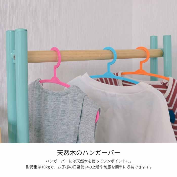 ハンガーの高さもお子様が自分で届くような高さなので、自分でお片付けを行うための習慣づけにもうってつけです。