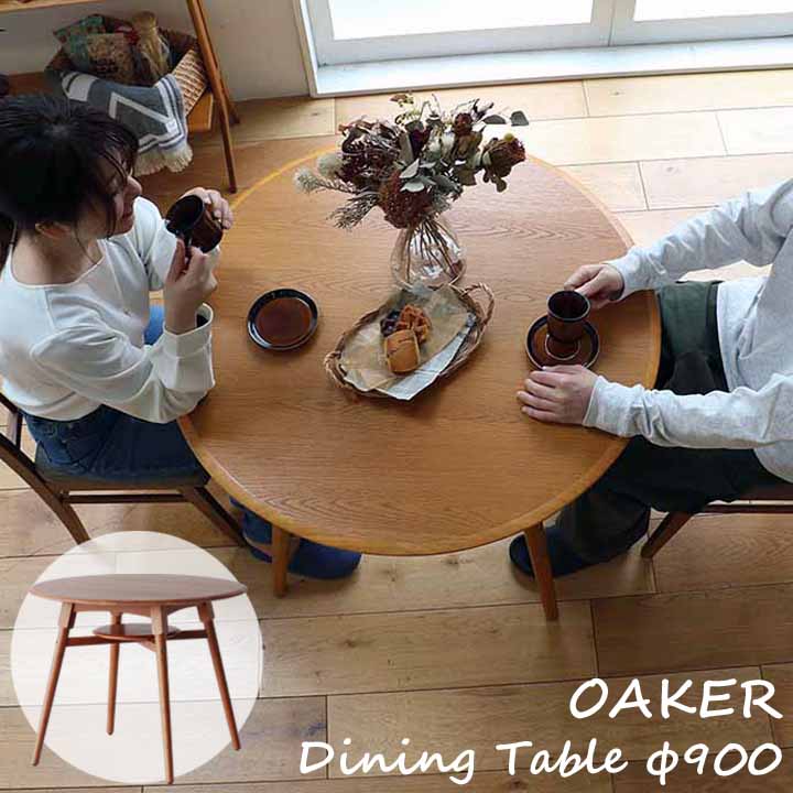 個性的でありながら、どこか懐かしく落ち着いた雰囲気のあるOAKERシリーズ。 レトロ感があり、ちょっとした非日常感を味わえます。圧迫感のない、コンパクトな円形ダイニングテーブル。角がなくみんなが顔を合わせながら食事を楽しめます。