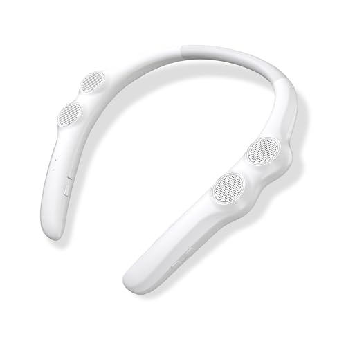 ・????まるで無重力!業界最軽量ウエラブル bluetooth スピーカーネックスピーカーを選ぶコツは?肩にのせるから、軽ければ軽いほど楽です!本体僅か78gで、性能を確保しながら軽量化を実現しました。肩や首への負担を最小限に抑えられ、付けているのを忘れるほどの軽さです。首掛けスピーカーなので、イヤホンやヘッドセットのような耳への圧迫が一切なく、長時間使っても疲れません。耳の蒸れや痒みも一切ありません。????音を身につける!「ながら聴き」に最適開放式のため環境音や呼びかけもしっかり聴きとれるので、周囲へ配慮しながら音楽を楽しめます。聴きながら周りの人との会話もスムーズにできます。bluetoothスピーカーとして通信距離は最大10mまで対応、場所に縛られず動き回りながら使えます。仕事/スポーツ/育児/家事など、音楽を楽しむシーンが広がります。IPX4防水仕様、少しの水滴や汗がついても大丈夫ですので、運動中やキッチンで作業中にも使えます。