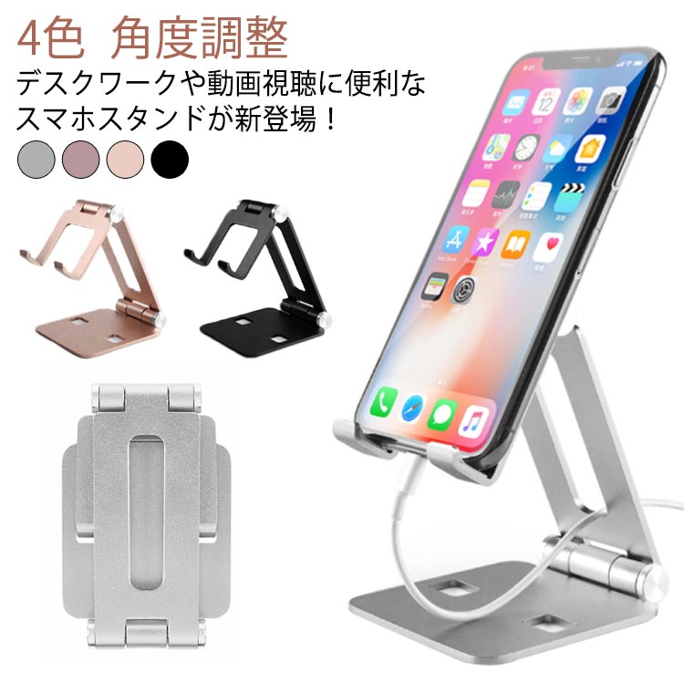 カラーはシルバー、ゴールド、ローズピンク、ブラックの4色からお好みに合わせてお選びいただけます!折りたたみ式タブレット/スマホ通用スタンド。270°角度調整可能。