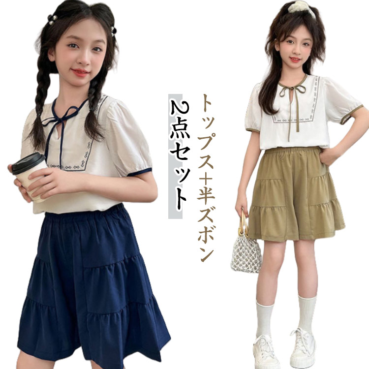 おしゃれ 夏服 セットアップ キッズ tシャツ トップス ショートパンツ 女の子 夏 上下セット セットアップ かわいい 子供 可愛い シフォン 服