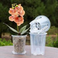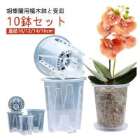 【胡蝶蘭用植木鉢と受皿 10鉢セット】 鉢底とサイドに穴がたくさん空いているため通気性に優れています。 鉢の中についた柱は胡蝶蘭の根腐れを防止できます。観葉植物の植え替えにお勧め! 透明なので、生育中の根の動きが見える!水の乾き具合も外から確認でき、水やりの悩みが解消されます! 胡蝶蘭だけでなく、多肉植物、アデニウムなど観葉植物の植え替えにもお勧め! | |