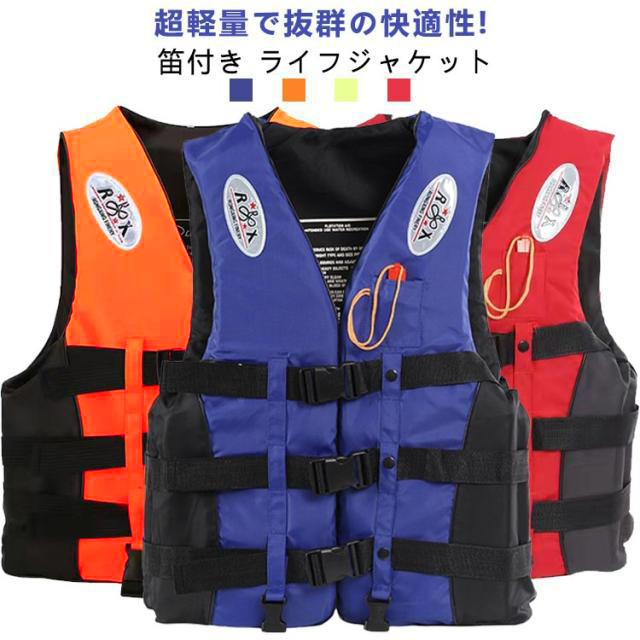 安心・安全 超軽量で抜群の快適性! 笛付き ライフジャケット 大人用/子供用 マリンレジャースポーツ、釣り、アウトドア、水泳の補助、水辺での遊び全般に大活躍! 安心・安全重視のフローティングベストです。 非常に軽量であるため、長時間着衣しても快適です。 超軽量で抜群の快適性! 着るタイプだから釣りの邪魔にならない 内ポケットが付いており、 小物収納も可能です。 笛付きで安心☆ 派手なカラーと反射材で夜間や暗がりでも目立ちます。 ベルトは長さ調整可能! 体形や服装にかかわらずお使いいただけるよう、対応ウエストは幅広いです。 緊急の水害避難時でもすぐに着用できて簡単・安心♪ 3重のベルトで波が強くても脱げ落ちにくいです。 股下ベルトで抜け落ちを防止できるので、安全性もバッチリです。 大きな袖ぐりで腕周りの可動域が広く、釣りの邪魔になりません。 ●ベルトの締めが緩い場合落水した際に脱げてしまう可能性がありますのできちんと装着を確認の上ご使用ください。 ●救命胴衣装着により落水時の生存率は高くなりますが、落水で100%命を救えると約束できるものではありません。御自身の責任で安全を考慮しご使用ください。 | |