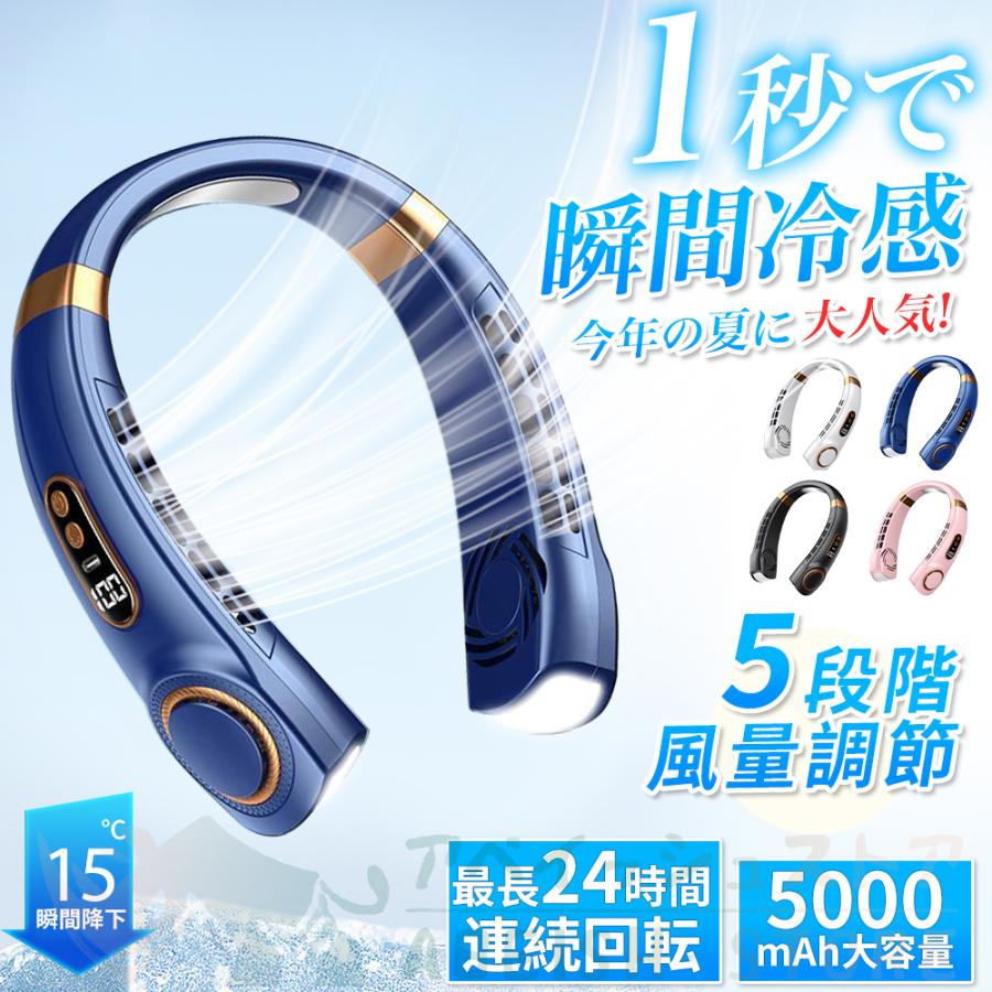ネッククーラー 首掛け扇風機 18° 5000mAh 5段階風量 大容量 静音 軽量 最大24時間動作 USB充電 360° 冷却プレート 1秒で冷やす リーフレス扇風機 強力 冷感