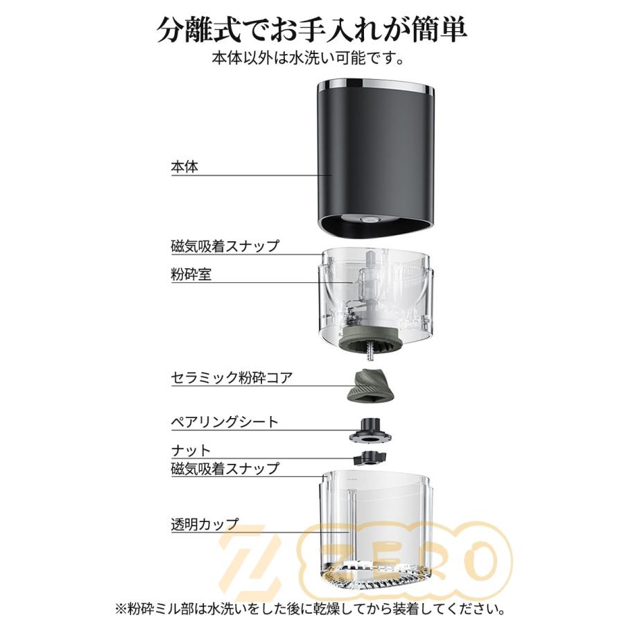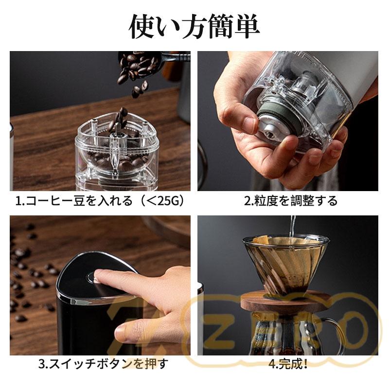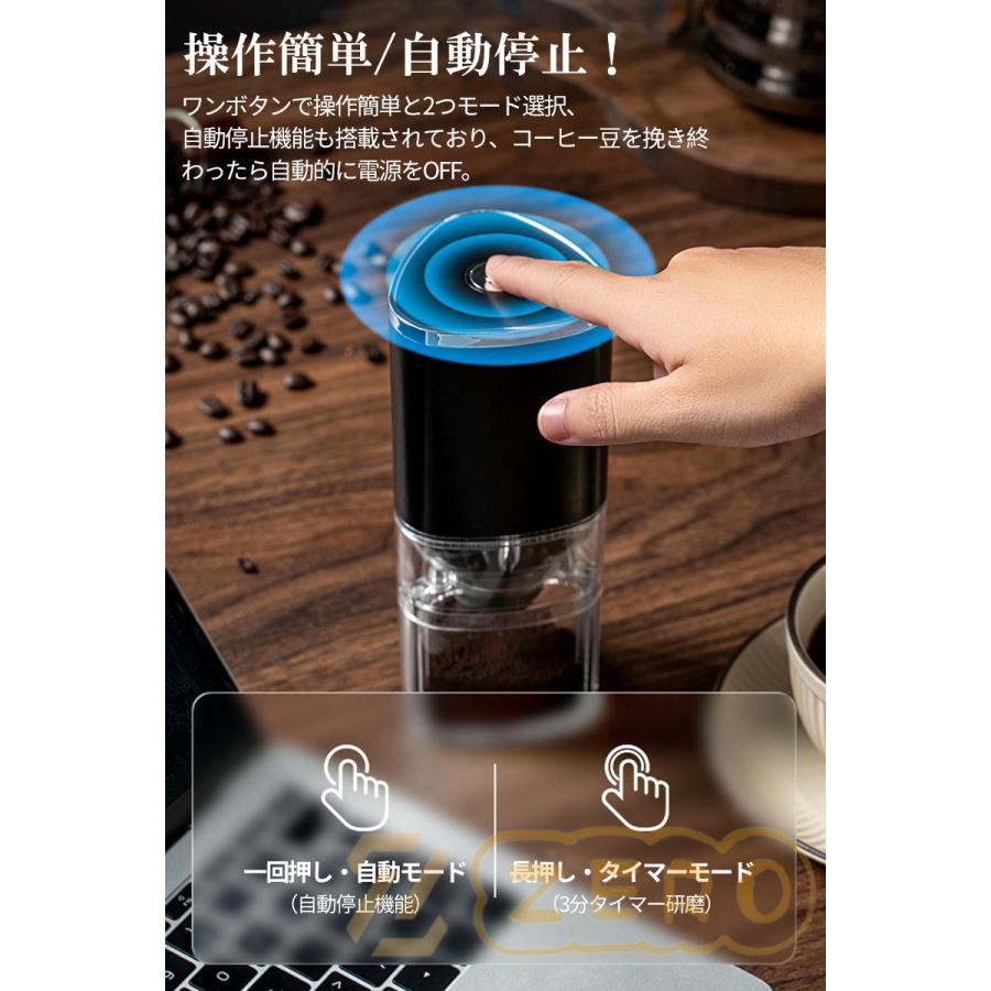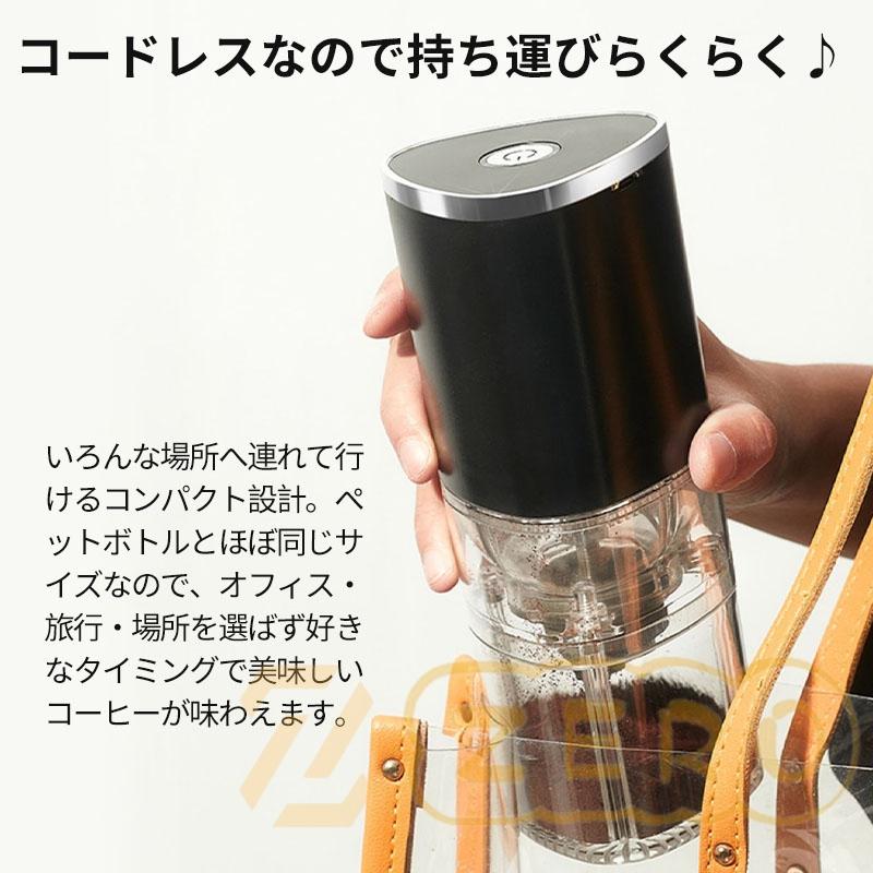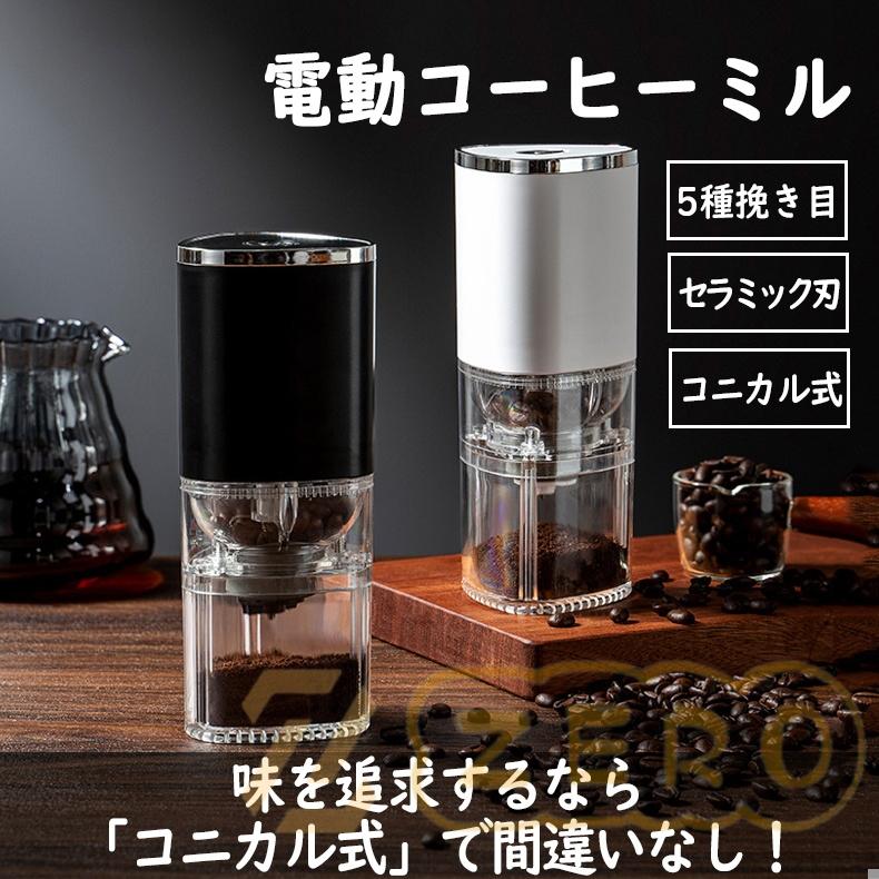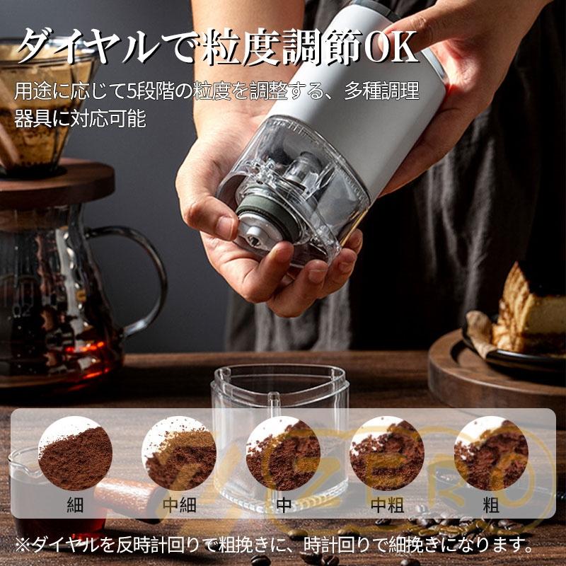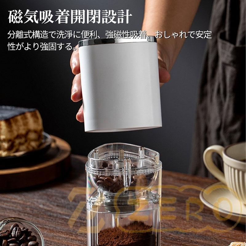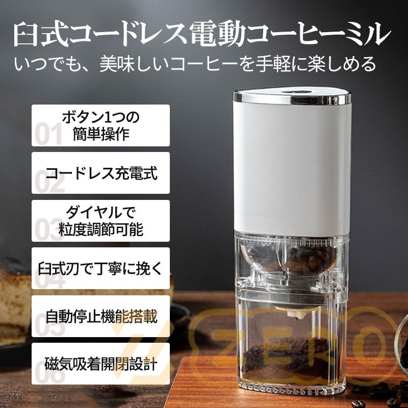 電動コーヒーミル 臼式コーヒーミル コードレス USB充電式 コーヒーグラインダー 分離式 珈琲ミル 自動停止 コンパクト 豆挽き機 水洗い可 磁気吸着 2024