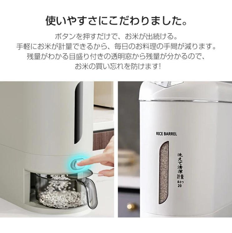 米びつ 密閉米びつ 5kg 10kg 米櫃 お米収納 米びつケース 密閉米びつ 計量カップ付 ボタン押しタイプ ふた付き収納ジャー 気密 収納 容器キッチン 無洗米 日用品