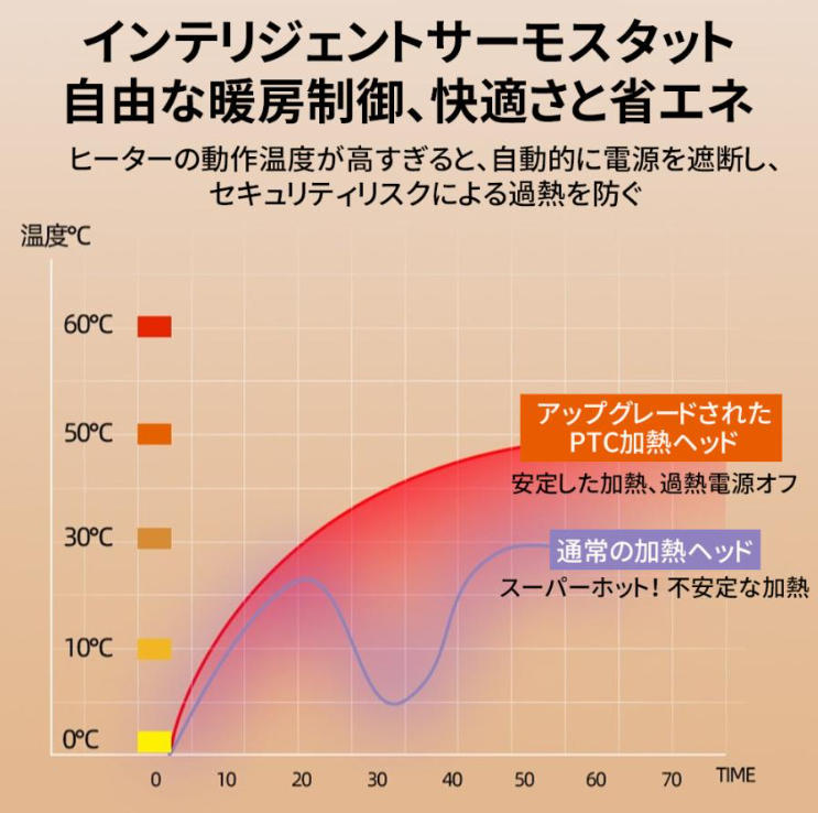 2、転倒OFF・過熱保護・環境温度センサー・切忘れ防止
