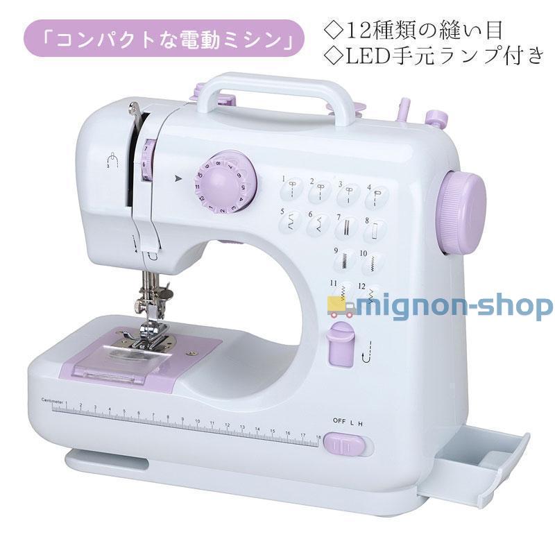 電動ミシン コンパクト 小型ミシン 家庭用ミシン 初心者 12種類の縫い目 フットコントローラー LED手元ランプ付き ACアダプタと単三電池