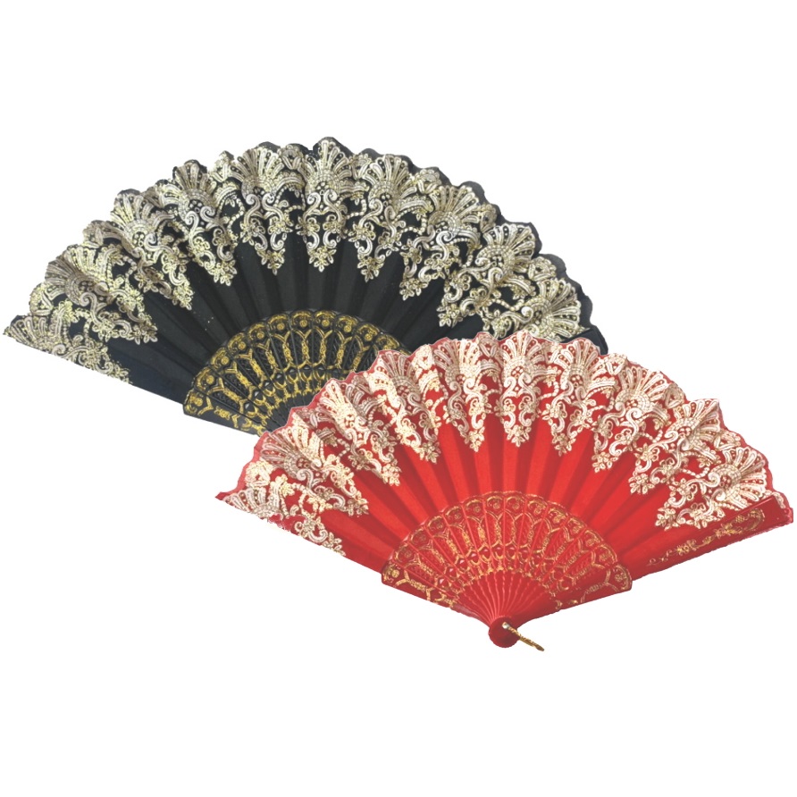 バレエ 扇子 ゴージャス ダンス ファン バレエ発表会 キトリ ドン・キホーテ 各国の姫 踊りに適した(ブラック・レッド)レッスン 用品 バレエ用品 せんす