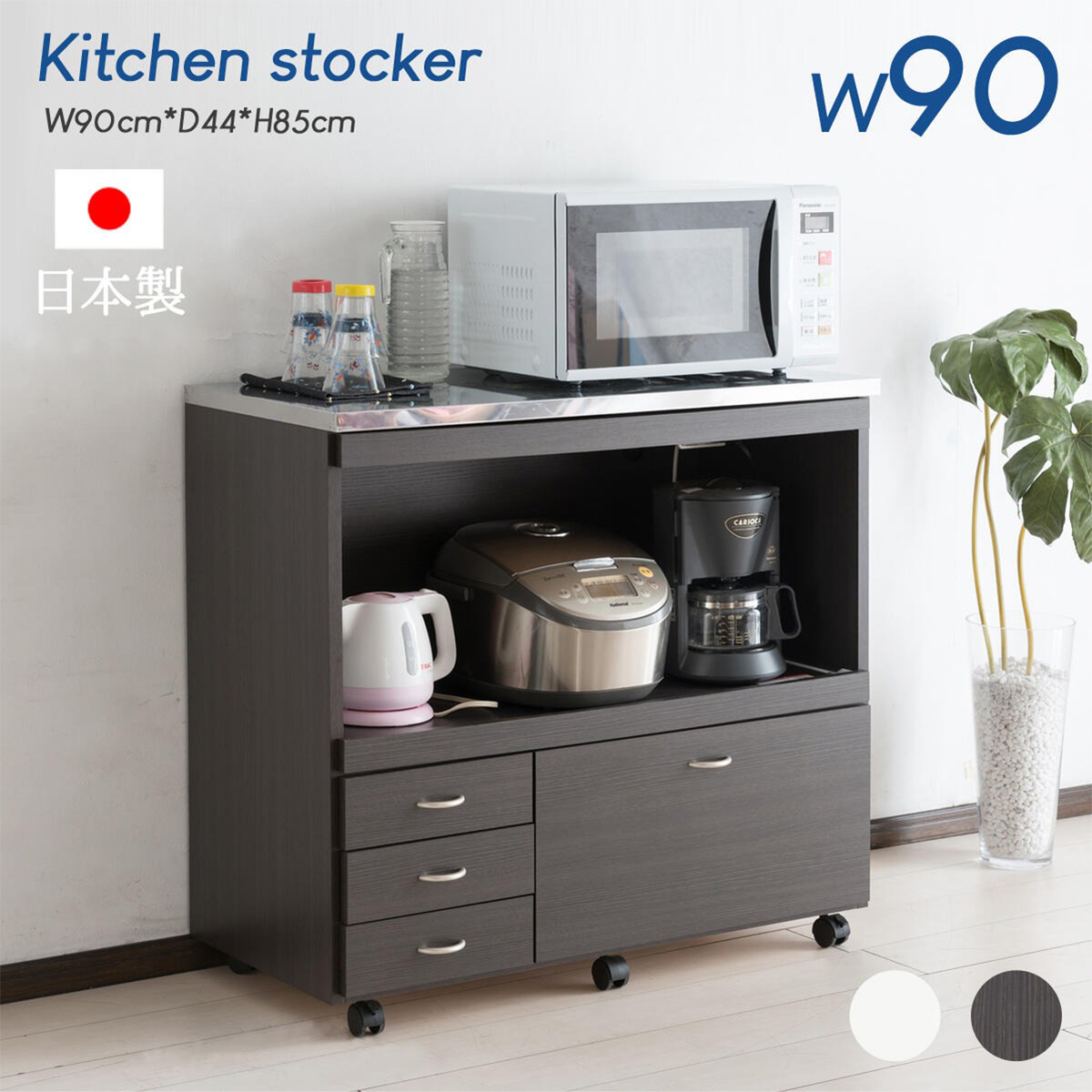 キッチンカウンター 90幅 完成品 間仕切り 背面化粧 ステンレス天板 キャスター付き 収納 奥行44 高さ85 爆買
