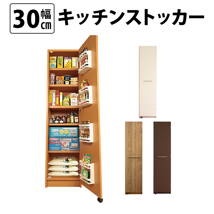 キッチンラック キッチンストッカー 幅30 スリム パントリー収納 木製 隙間収納 おしゃれ 右開き