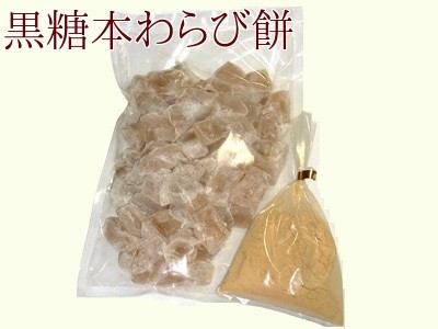 原材料:砂糖(タイ産)、黒糖、粉末水飴、本わらび粉、/加工澱粉、ソルビトール、(別途)きな粉(大豆)