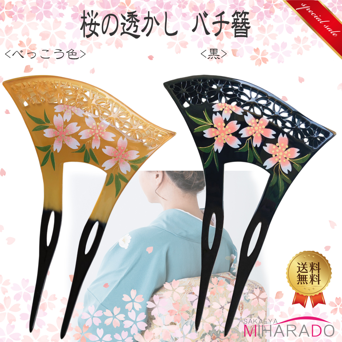 かんざし バチ型 桜の透かし 二本差し 花柄 留袖 訪問着