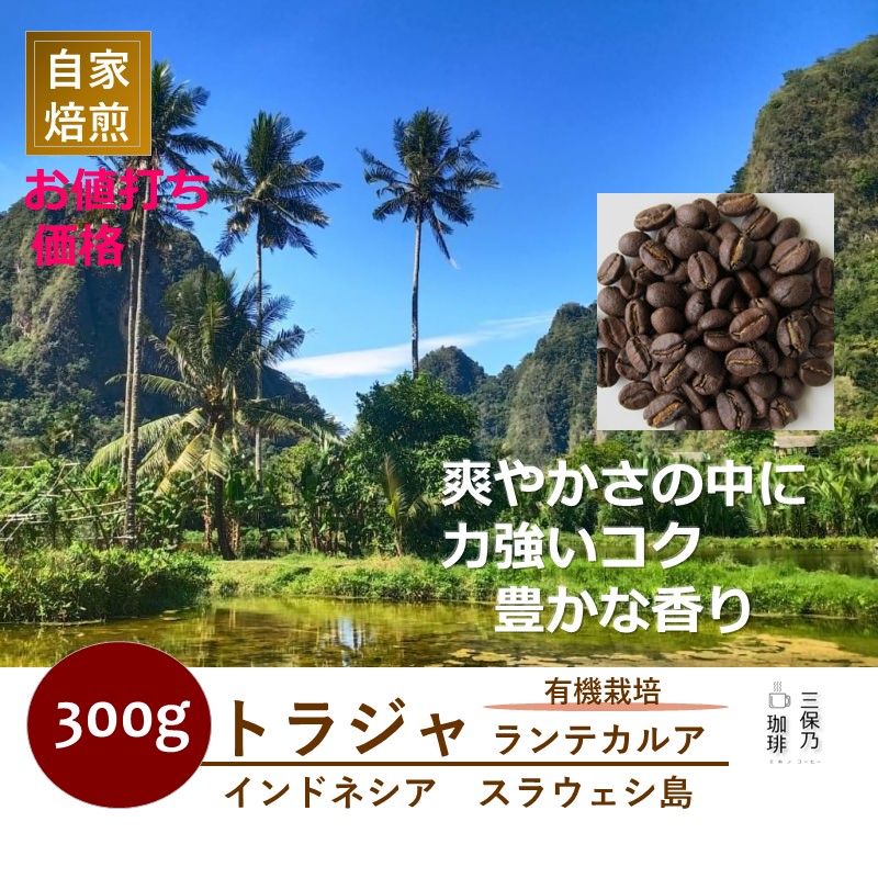 インドネシア トラジャ ランテカルア 有機栽培 300g 自家焙煎 コーヒー 中深煎り
