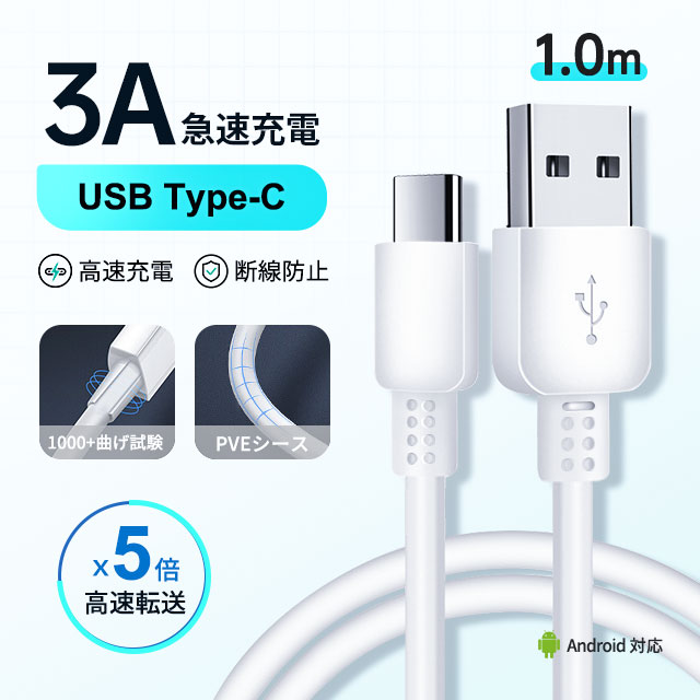 USB Type-Cケーブル 1m/2m 3A USB-IF認定済み タイプC モバイルバッテリー Type-C端子 急速充電 スピードデータ転送 Xperia Galaxy AQUOS 多機種対応