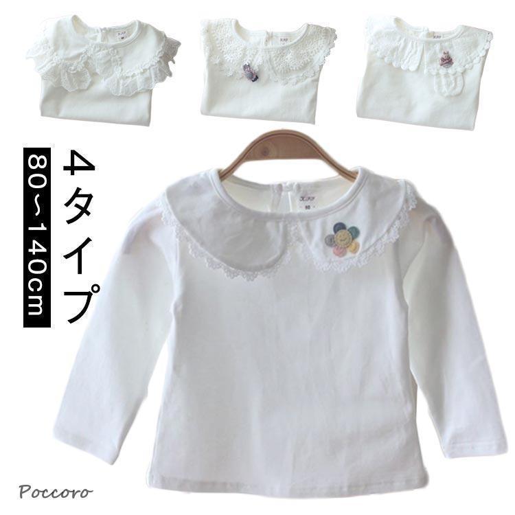 ベビー服 衿 ブラウス 襟付き tシャツ 長袖 ス 春 秋 赤ちゃん 女の子 白 カットソー 綿 シンプル 子供服 コットン キッズ 可愛い フ