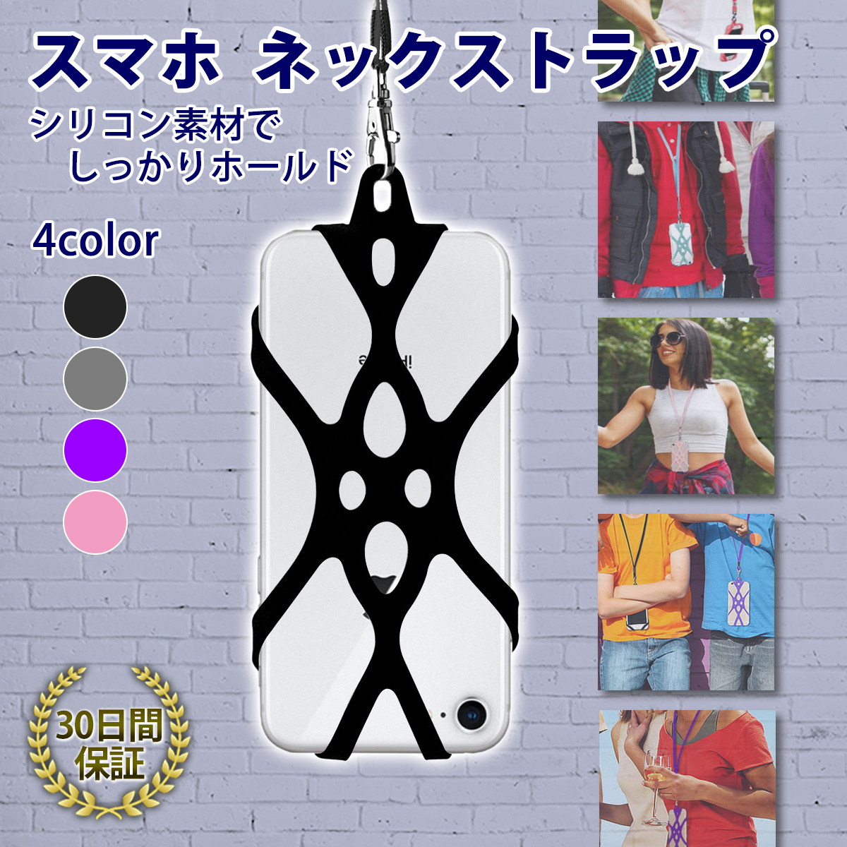 スマホ ネックストラップ 首掛け シリコン製 ストラップホール不要 ケースの上から装着可能 落下防止 紛失防止 iPhone android 各社対応