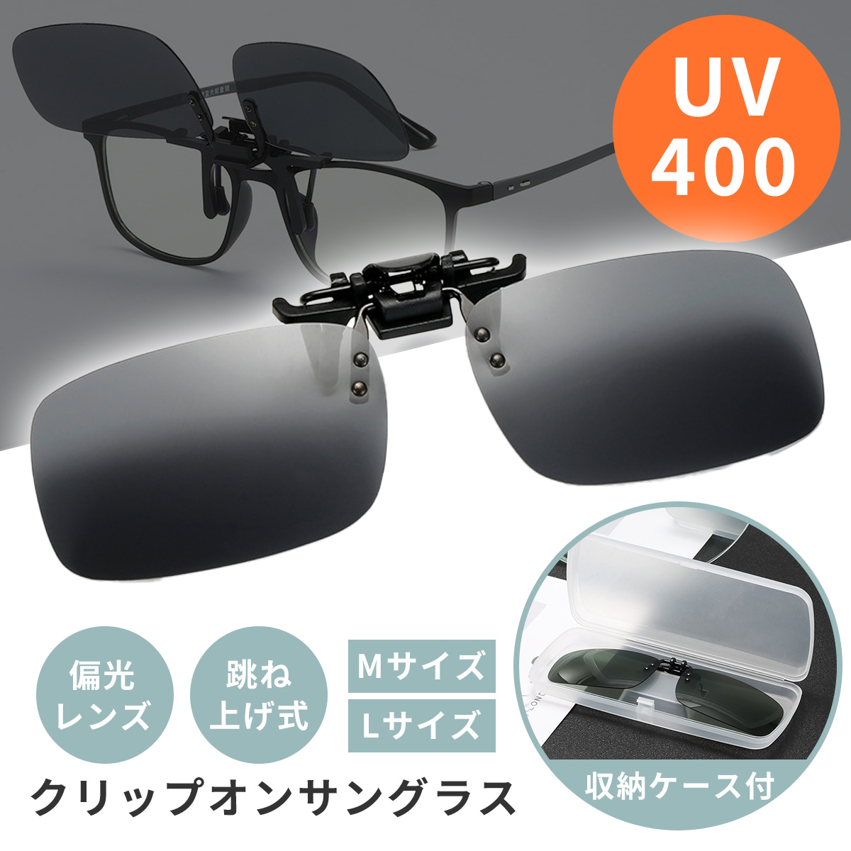 クリップオン サングラス メガネの上から メンズ UVカット ケース クリップ式 跳ね上げ式 メガネ 偏光 オーバー ゴルフ 釣り 車 運転 レディース おしゃれ