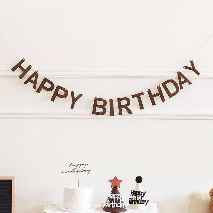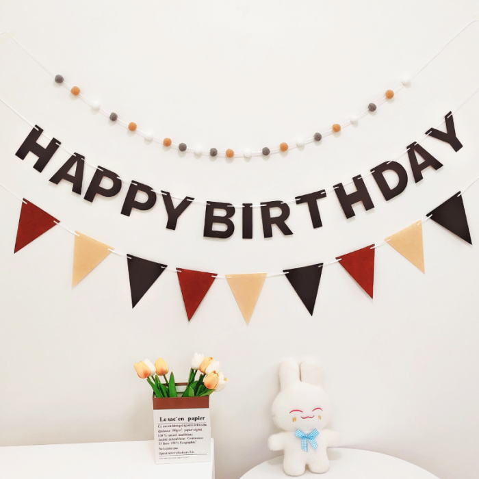 ※Cハッピーバースディフェルトガーランド(ダークブラウン)アルファベット、紐