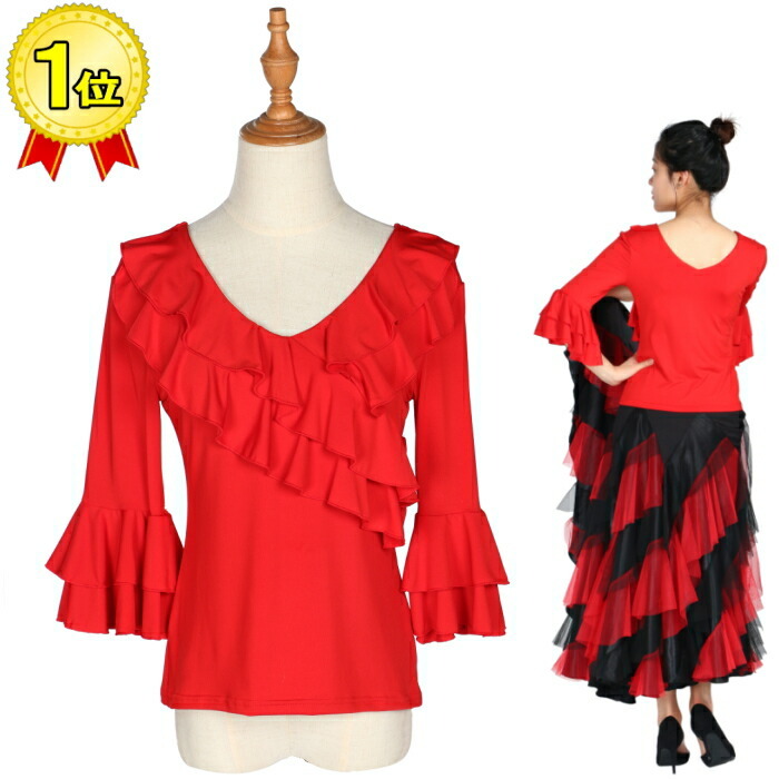 ダンス衣装 トップス【レッド 赤】 フラメンコ ラテンダンス 社交ダンス 衣装 ブラウス ダンス 赤 odt1-pa