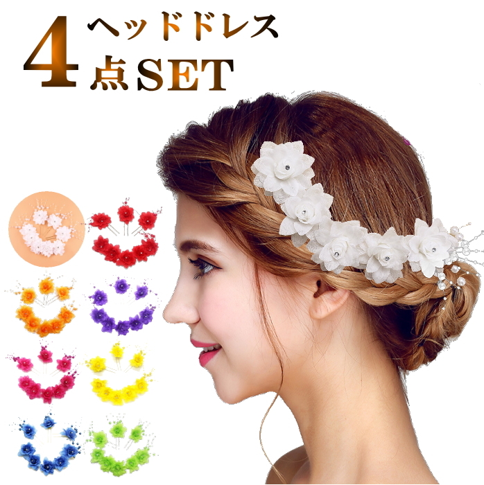 レディース 子ども 子供 大人 キッズ ジュニア アクセサリーお得な豪華4点セット ヘッドドレス バックカチューシャ ワイヤー 髪飾り コサージュ ダンス 衣装 パール 花 花冠 Uピン ティアラ 舞台 フラメンコ 社交ダンス ヒップホップ ヘアアクセサリー ヘアクリップ 成人式 浴衣 着物 和装 ブライダル 卒業式 ミカドレス