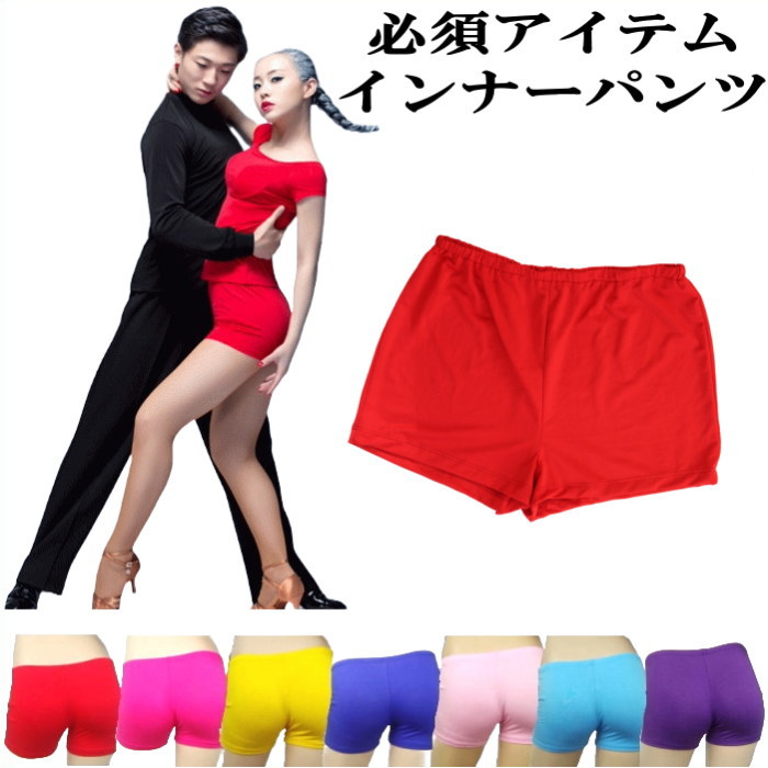 ダンス衣装 レッド インナー ショートパンツ レディース ジュニア キッズ レッスン着 ヨガ フィットネス ベリー 1分丈 cy148-p0