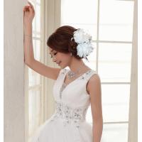 レースや羽根フェザーが装飾され、豪華なコサージュです。