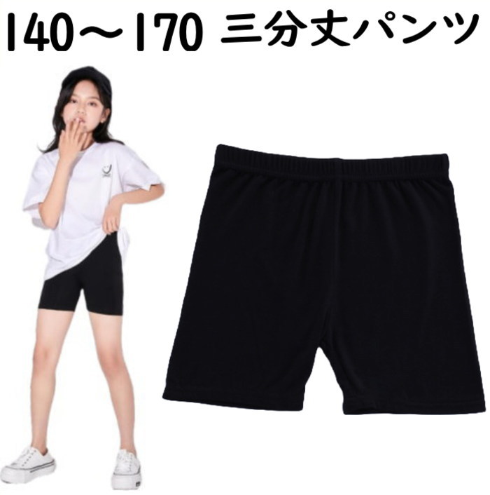 ブラック Sサイズ 三分丈 キッズ ペチパンツ ペチパン 見せパン ダンス ショートパンツ インナー バレエ ヨガ レディース 黒 cy29n-p0