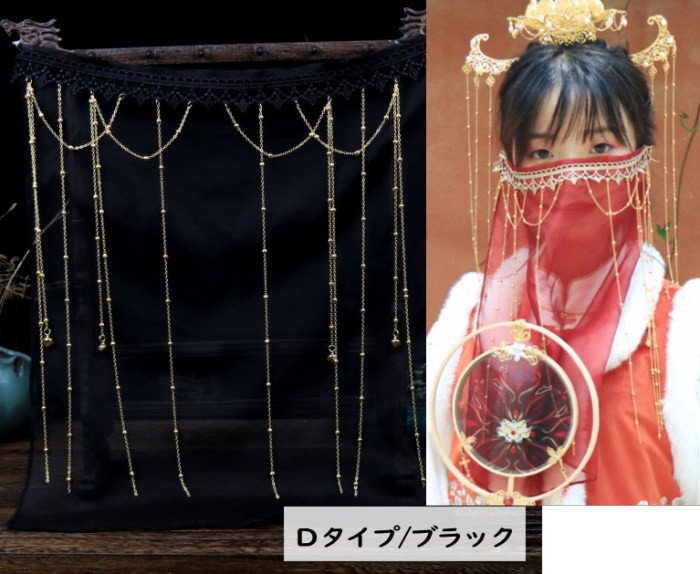 ベリーダンス フェイスベール【黒-Dタイプ】マスク 黒子 和風 時代劇 古典ダンス アラビアン cy57n-pa