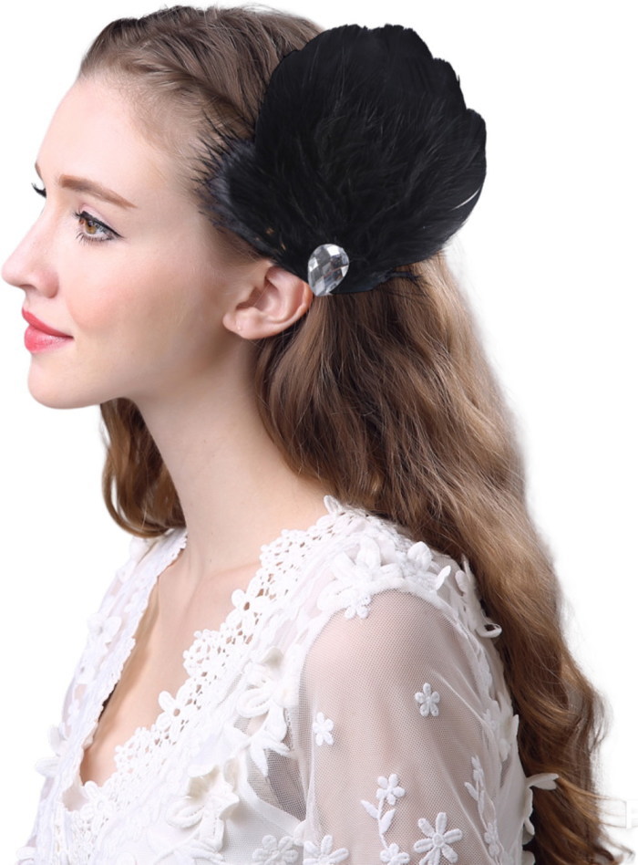 羽根 フェザー ヘアアクセ 【ブラック】ビックコサージュヘッドドレス 髪飾り ダンス バレエ バレリーナ cy7-pa